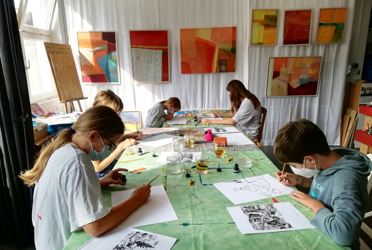 Sie arbeiten für sich, oder im Duo, bekommen fachkundige Anregung und Begleitung und können sich in der Kleingruppe inspirieren lassen.